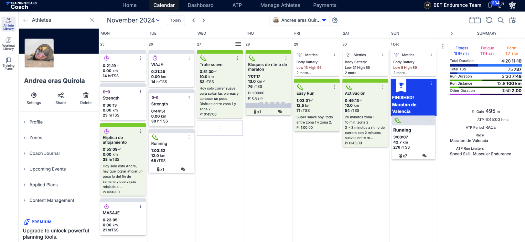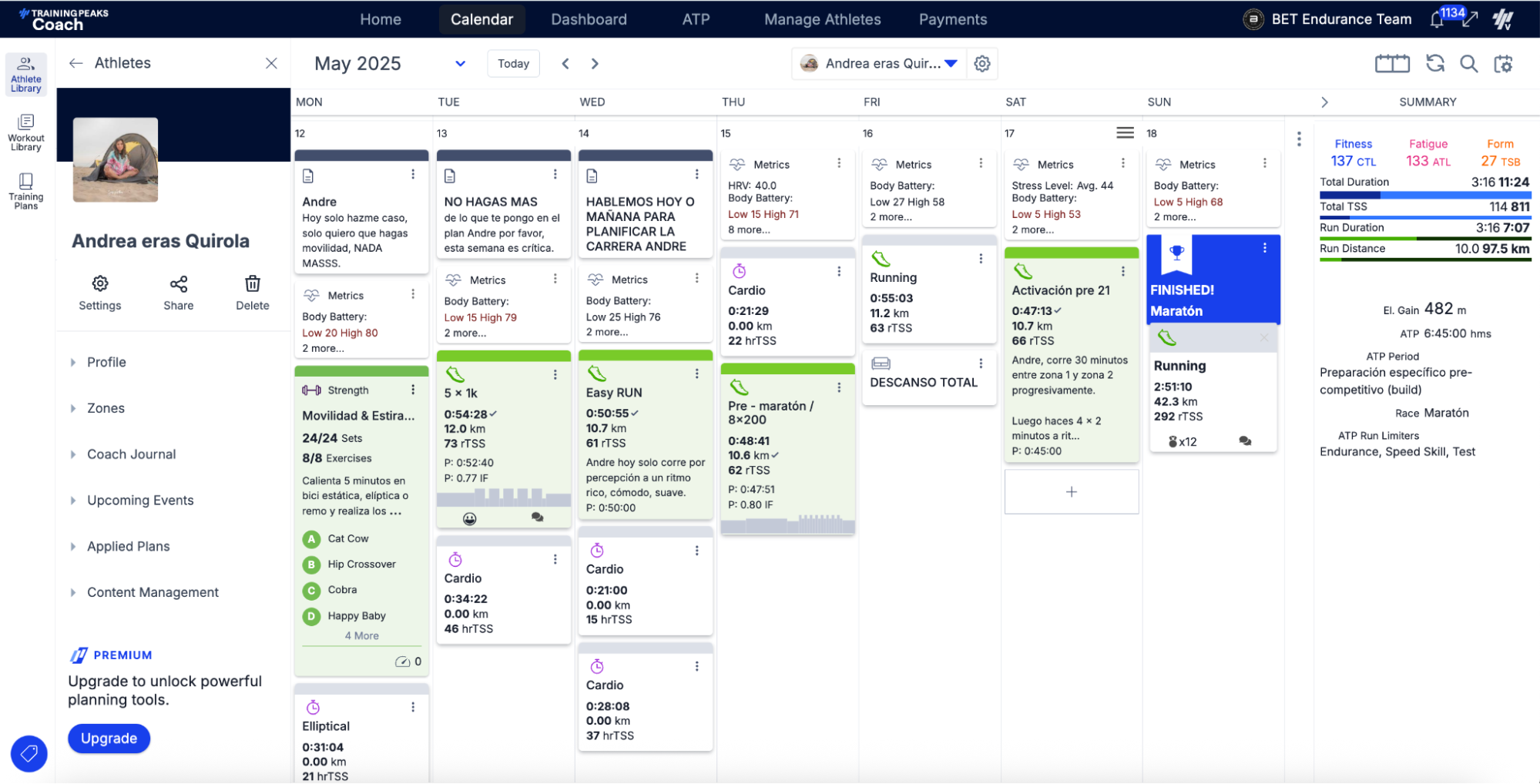 - Control de fatiga: monitoreo de TSS y métricas de TrainingPeaks para evitar sobreentrenamiento.